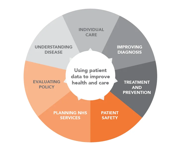 If small amounts of data from many patients are linked up and pooled, researchers and doctors can look for patterns in the data, helping them develop new ways of predicting or diagnosing illness. The information from patient records is invaluable to help develop new treatments, monitor safety, plan NHS services and evaluate policies.